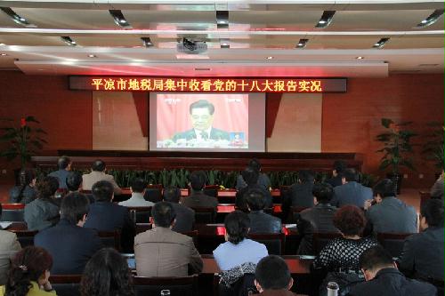 11月8日上午,中国共产党第十八次全国代表大会在北京人民大会堂隆重开幕,胡锦涛同志向大会作报告。为了及时学习、领会好党的十八大报告精神,平凉市地税局机关组织全体干部职工在五楼会议室集中收看了十八大开幕式实况,认真聆听了胡锦涛同志的报告。 收看结束后,与会同志们纷纷表示,要认真学习和深刻领会胡锦涛同志的报告精神,将报告精神及时转化为推进各项工作的强大动力,立足本职岗位,爱岗敬业奉献,切实履行好为国聚财、为民收税的神圣职责,为服务转型跨越和全面建成小康社会做了新的贡献。