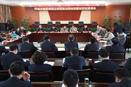 10月18日下午,平凉市地税局召开2013年效能风暴行动民主评议机关作风和政风行风工作质询会议,市第六评议组对地税局机关作风和政风行风工作进行了质询和评议。会议由市地税局党组成员、纪检组长刘吉祥主持,市地税局特邀监察员、义务监督员和纳税人代表共16人参加了评议。市局在家的党组各成员及机关科级以上干部30余人参加了会议。