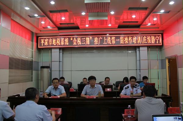 为确保“金税三期”工程按期上线,按照省局的工作要求,8月18日,平凉市地税系统“金税三期”工程推广上线第一期培训班在静宁县地税局正式开班。市地税局党组成员、副局长王科出席开班仪式并讲话。静宁和庄浪两县地税局征管一线的60名干部参加培训。
