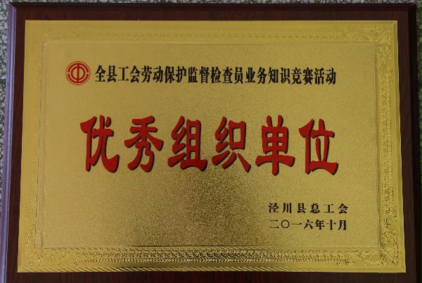 为了更好的贯彻党税务十八大和十八届三中、四中、五中全会精神,深入学习习近平总书记系列重要讲话精神,牢固树立安全发展理念,泾川县地税局在泾川县总工会开展的劳动保护监督检查员业务知识竞赛活动中获得了“优秀组织单位”,两名同志荣获优胜个人。