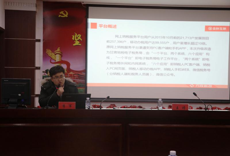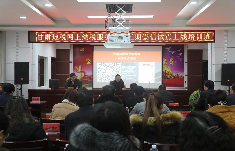 为认真落实“放管服”改革工作,进一步提高纳税服务和税源数据采集整合能力,全面提升信息化服务水平。12月14日,崇信地税举办甘肃地税网上纳税服务平台三期崇信试点上线培训班,纳税人代表、税务工作人员共计46名人员参加了会议。