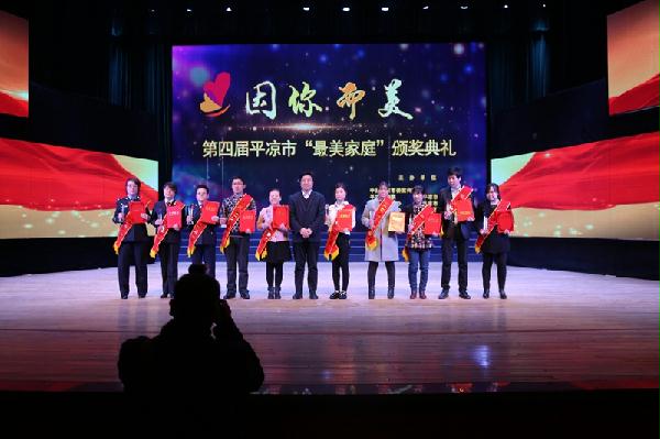 3月3日晚,纪念第107个“三八”国际妇女节暨“因你而美”第四届平凉市寻找“最美家庭”颁奖典礼在平凉剧院隆重举行。崆峒区地税局职工刘猛被评为平凉市“最美廉洁守法家庭”荣誉称号。(崔雅莉)